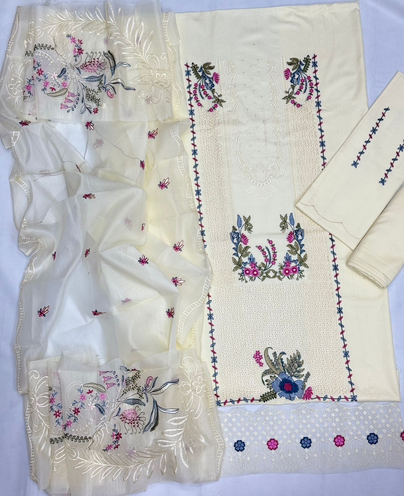 Upgrade your wardrobe with our exclusive Women’s Dhanak Fancy Party Wear Suit – designed for modern elegance and comfort. This 3-piece embroidered suit features: