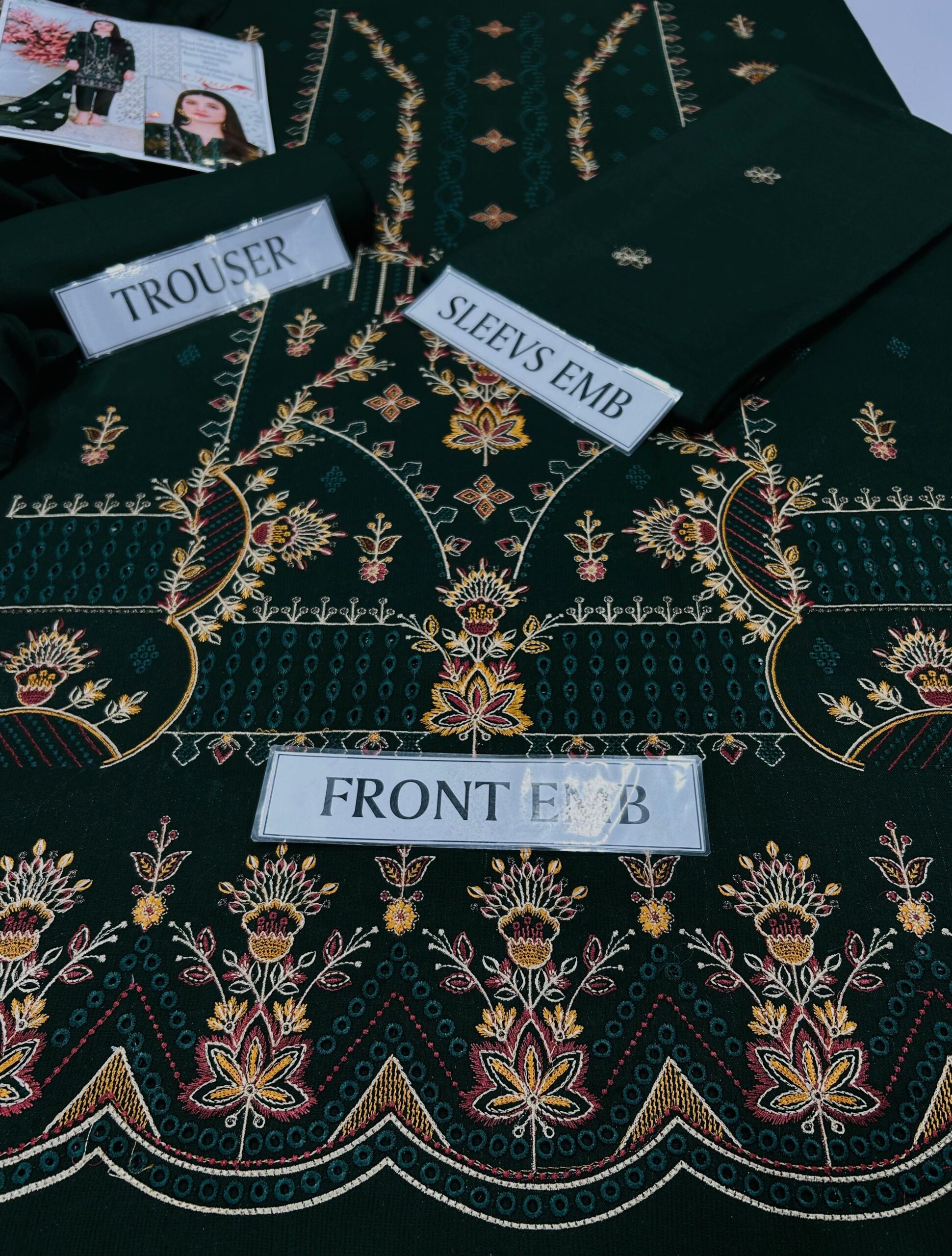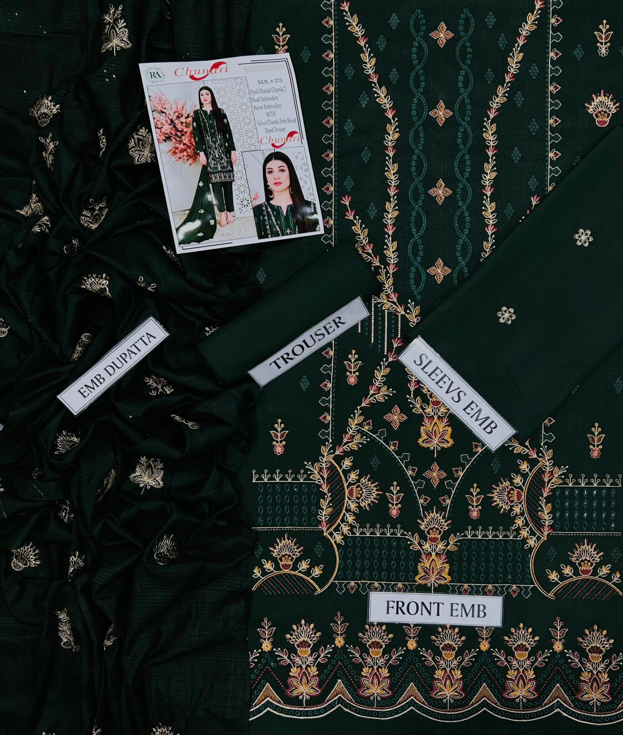 Step into elegance this winter with the Chunari Premium Air-Jet Dhanak Collection. Crafted with 💯% guaranteed Dhanak quality fabric, this 3-piece suit combines luxury embroidery with a SHAWL FANCY VELVET CHAMKI DHANAK HEAVY EMB SHAWL WITH PALLU SEQUENCE VELVET WORK ON BASE, making it a perfect choice for festive and seasonal wear.