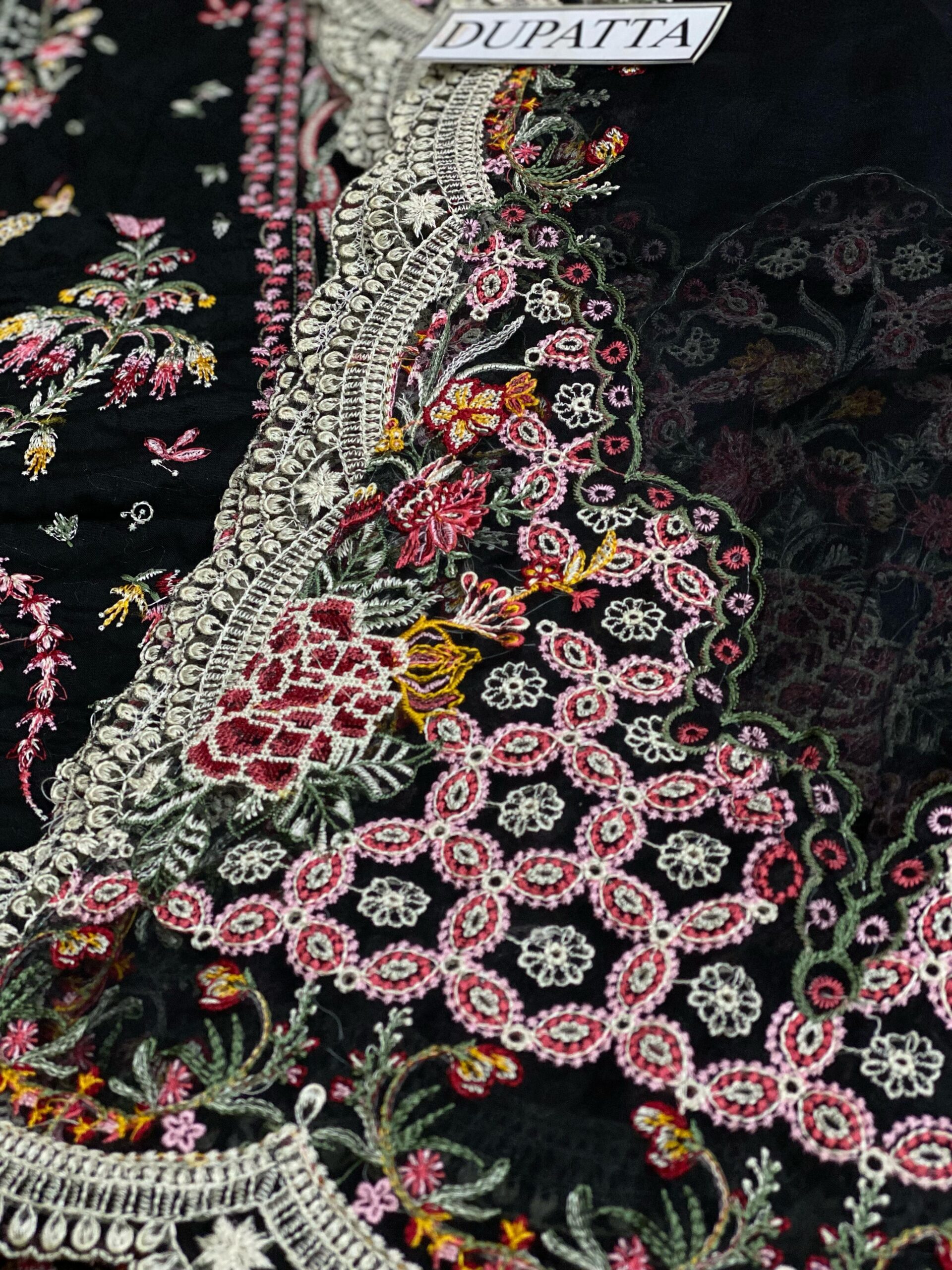 Elevate your wardrobe with the Qalamkar Unstitched Replica, a perfect blend of traditional craftsmanship and modern elegance. Made from premium fabrics, this 3-piece suit features heavy multi-thread embroidery on organza, making it ideal for festive occasions and formal gatherings.