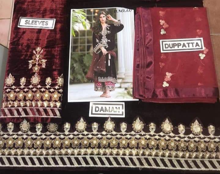 Daman Embroidery: Rich velvet with fine finishing for elegance.